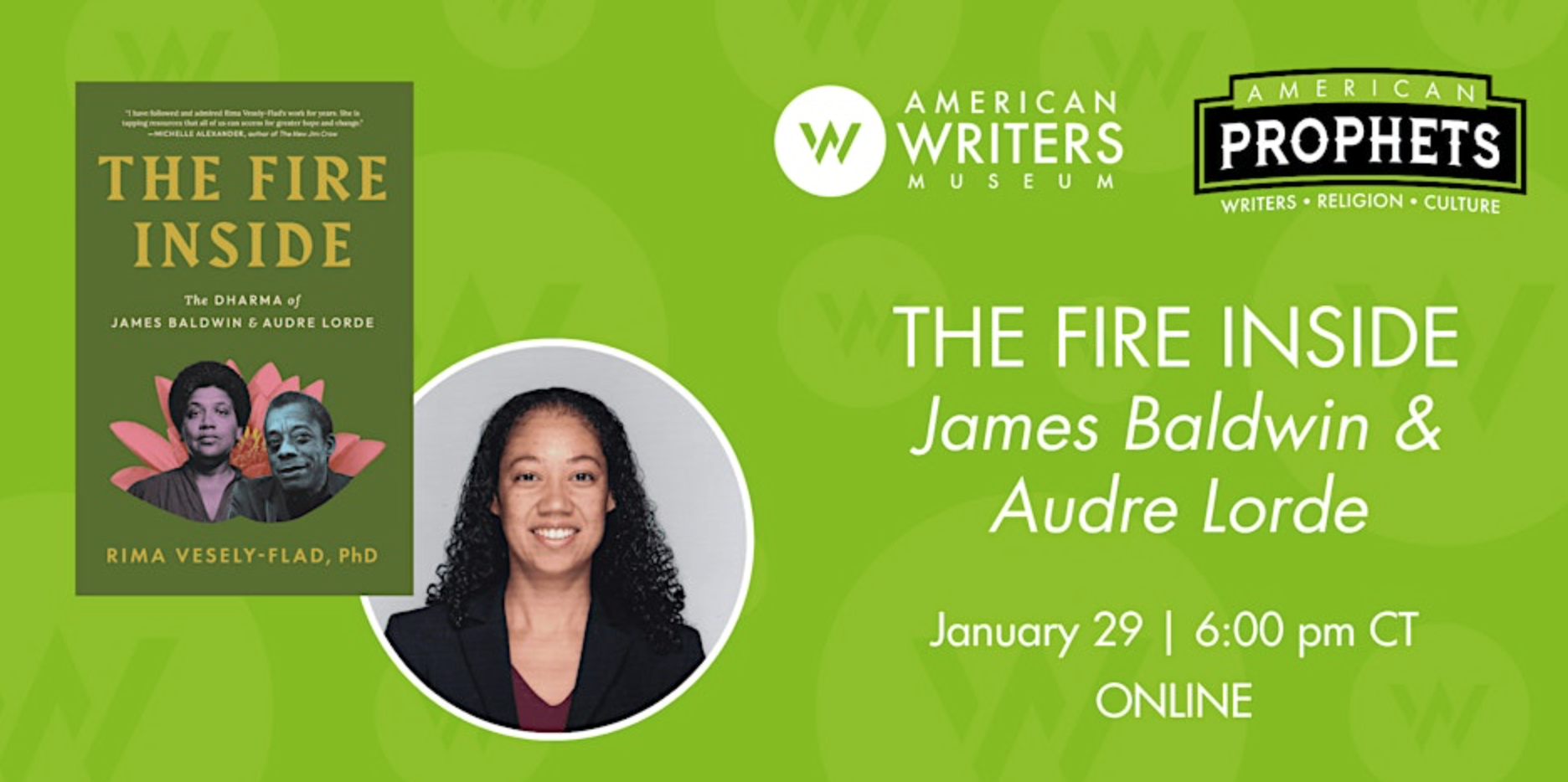 Join us online for a discussion with Dr. Rima Vesely-Flad about her new book The Fire Inside: The Dharma of James Baldwin and Audre Lorde. Black, queer, feminist, Buddhist: The Fire Inside casts a fresh new light on the radical literary legacies of James Baldwin and Audre Lorde.